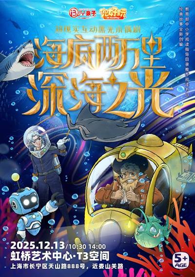 【上海】兜好玩艺术剧团·超现实互动黑光木偶剧《海底两万里·深海之光》演出时间:2025年12月13日(周六)10:30/14:00演出地址:虹桥艺术中心·T3空间 | 上海市长宁区天山路888号演出时长:约60分钟,无中场休息(以现场为准)购票方式:立即购买公元2050年,海洋学家阿龙教授与他的AI