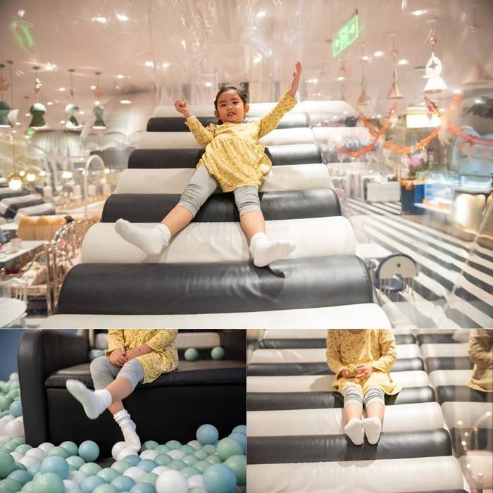 爬道里、海洋球池中、滑梯上……