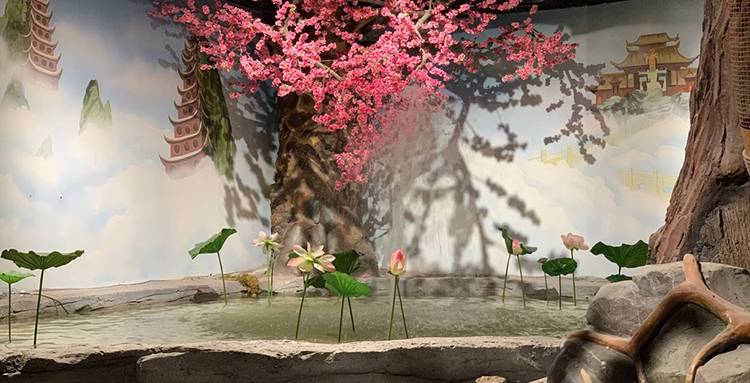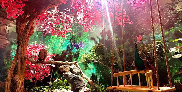 第四十七回《西游记》狮驼岭一节中,讲到混沌初开,万物始生,世间开始有飞禽和走兽,走兽以麒麟为首,飞禽以凤凰为首,凤凰生下孔雀和大鹏。逼真的树洞搭配绿植,奇幻之旅就此开启~