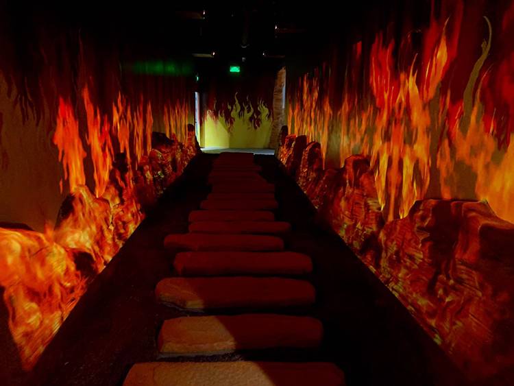 在西游,火焰山这一路有现代的全息投影,旁边还有岩浆,犹如身临其境