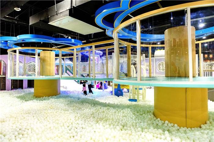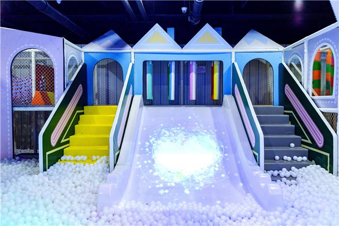 高层旱雪滑梯、空中飞人、竞技灌篮区
