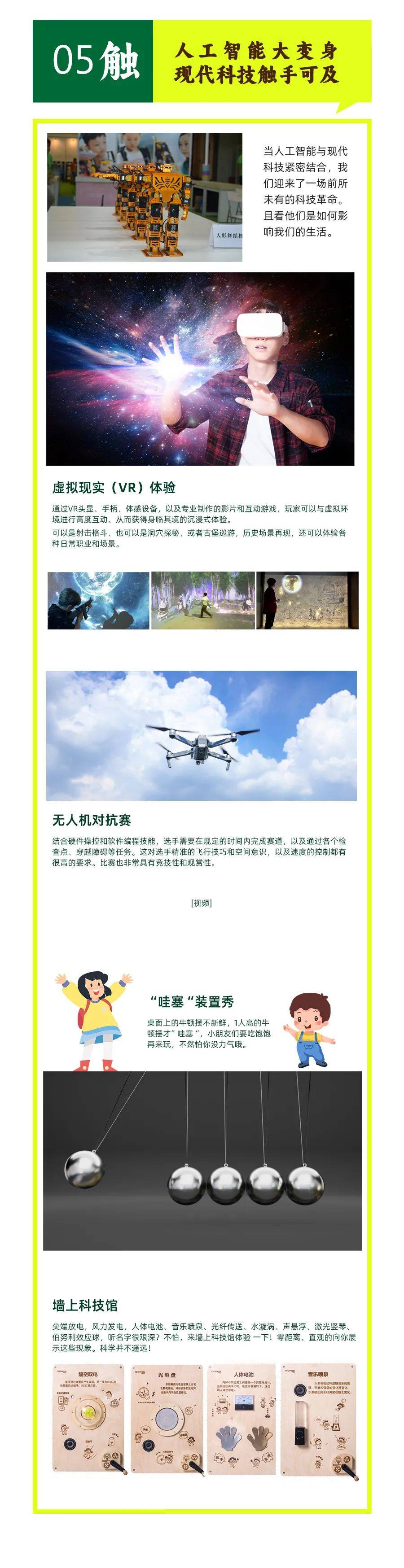你可以畅游奇妙化学、太空探索、创意思维、中华非遗等各种特色活动,还可以打卡球摆矩阵,畅享“管中窥豹”的乐趣。