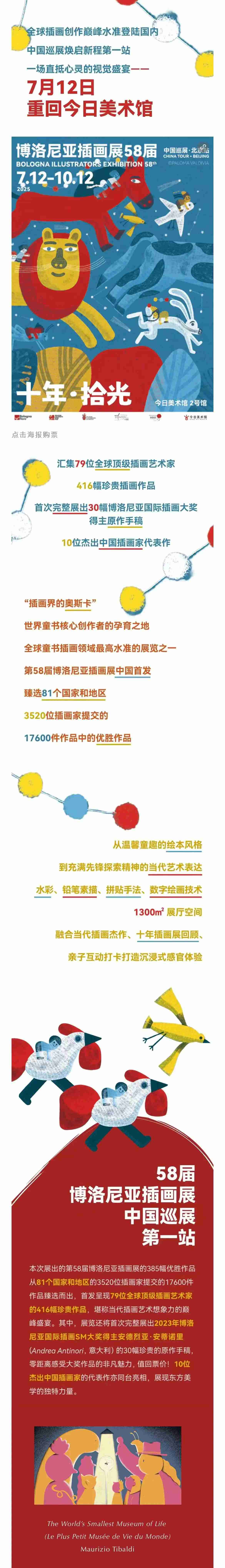 早鸟十年·拾光:58届博洛尼亚插画展2025年7月12日-10月12日北京今日美术馆2号馆开展