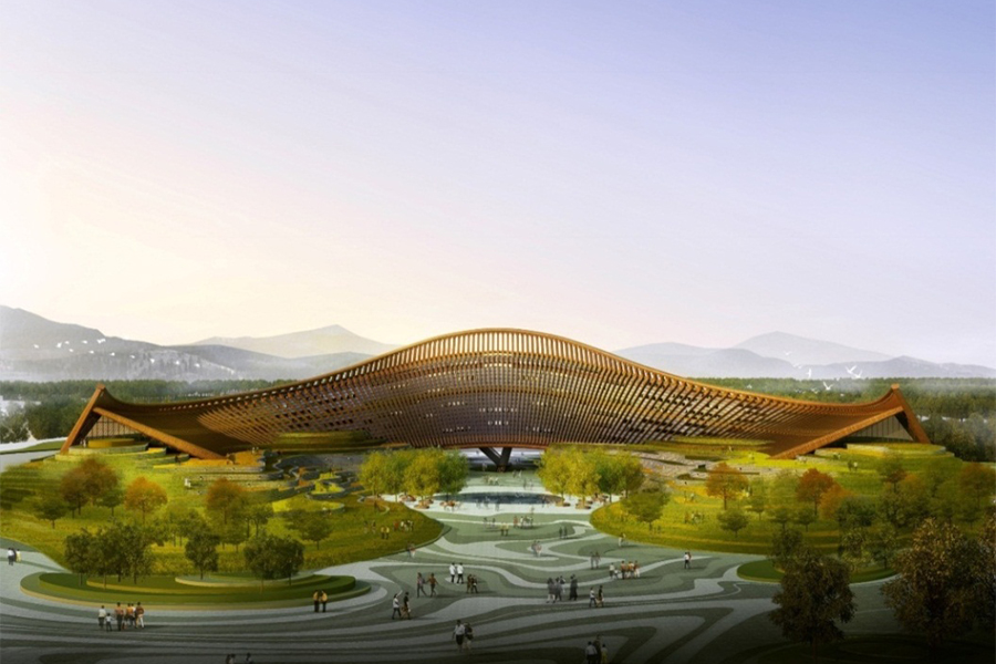 演艺中心将在会时承担开闭幕式等大型活动的功能,它宛如一只彩蝶驻足在妫湖之滨,更有“如云萦绕山间,如溪穿梭林间”的一色台、华夏四方名花盛放的九州花境、翠影红霞映朝日的千翠池、“花伞彩荫浓聚,万国佳客举杯”的丝路花语;正可谓永宁高阁揽胜景、天田妫汭蝶飞舞,北京世园会园区将以其得天独厚的自然景观及独具匠心的人工设计,使游客寄情山水园艺之中而流连忘返。