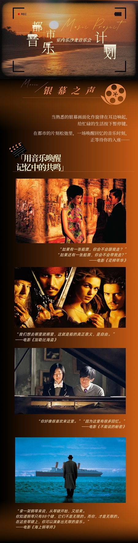 「银幕之声」《花样年华》《海上钢琴师》经典电影作品室内乐沙龙音乐会