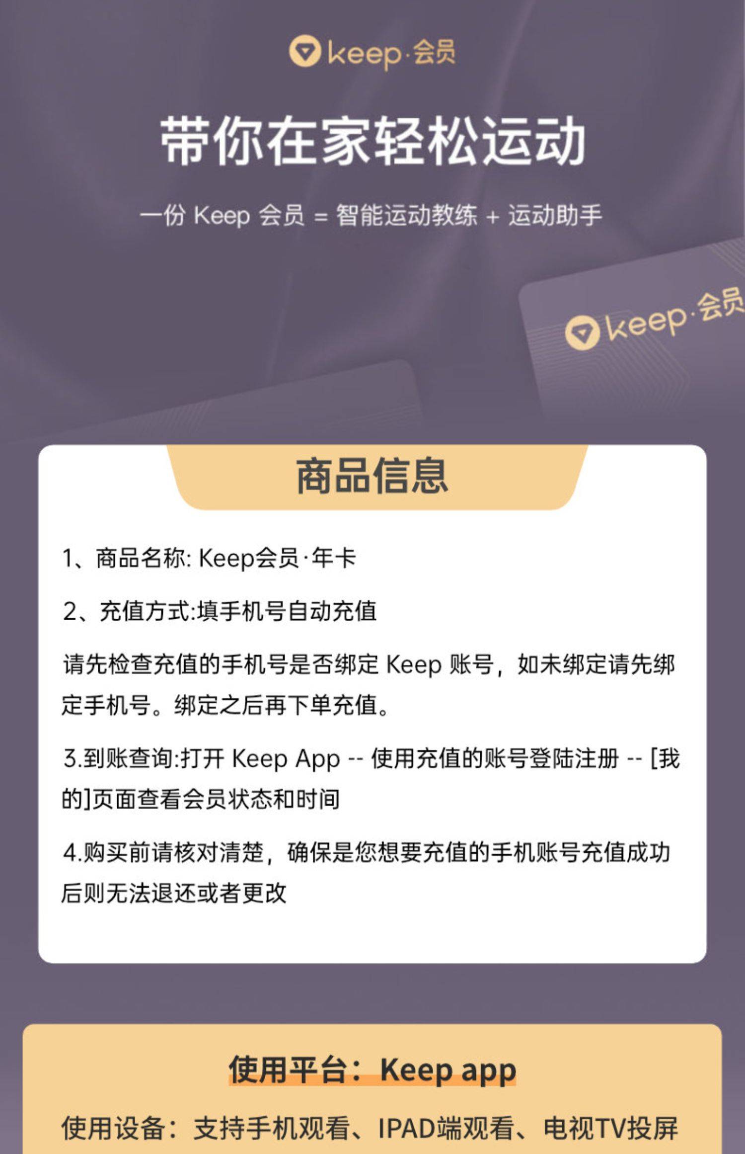2、充值账号:请填写登录KEEP用的手机号,购买前,请先开启KEEP『手机账号登录』,否则充值失败