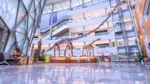 上海自然博物馆位于静安雕塑公园,场馆宛如一只“绿螺”,外观独特。如今的新馆内展出了上万件标本藏品,内容丰富,尤其以一副体长约26米的中加马门溪龙的骨架甚是抢眼。