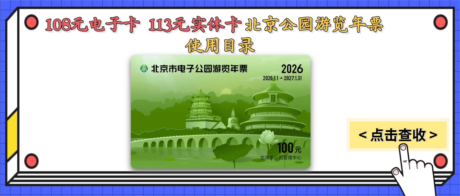北京市公园游览年票:2026年1月1日到2027年1月31日
