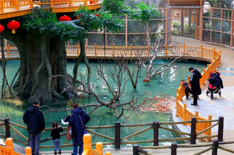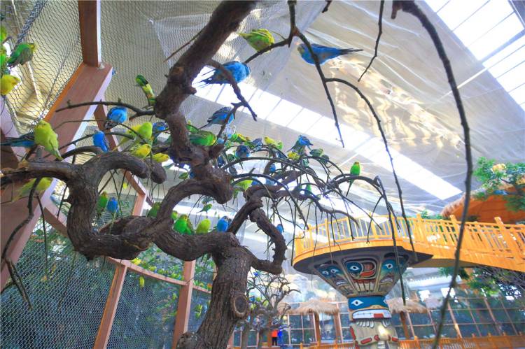 “百鸟乐园”占地约6000平米,场馆投放了上万只鸟儿,增加了空中俯瞰观鸟长廊,在超大鸟类栖息空间内,可以与巨嘴鸟、虎皮鹦鹉、玄凤鹦鹉亲密互动,还可以通过各种,精美的标识标牌学到各种鸟类科普知识。