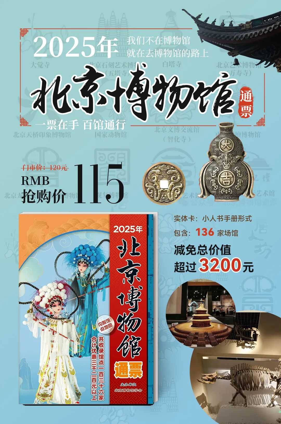 《2025年北京博物馆通票》开始发售,陪伴京城百姓28年的博物馆小手册又如约和广大朋友见面了!通票汇集北京市136家博物馆、科普教育基地和文化旅游景点,参加馆点绝大多数提供了两人次免费或者优惠折扣。
