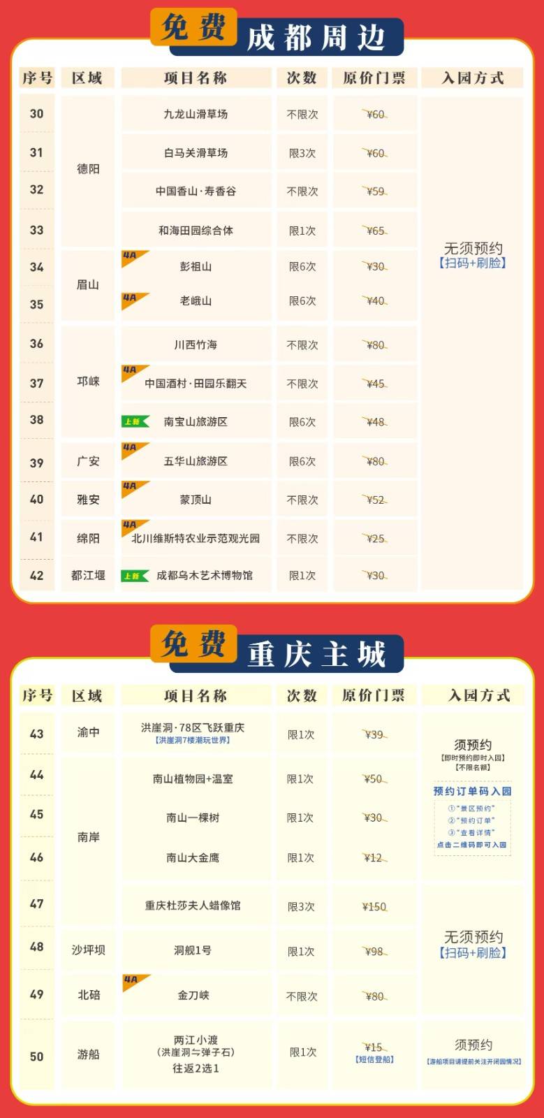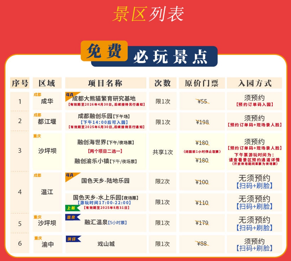2026年成渝文旅一卡通(金熊猫版)畅玩成都/重庆50 景区景点,抢购价199元,玩两个景区就回本!