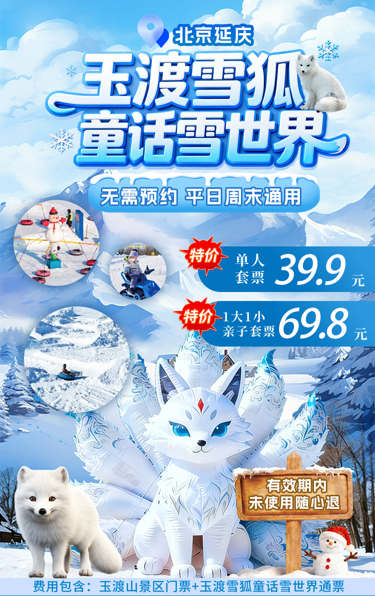 开园特惠·1大1小亲子票69.8元/人玉渡雪狐童话雪世界通票 玉渡山门票
