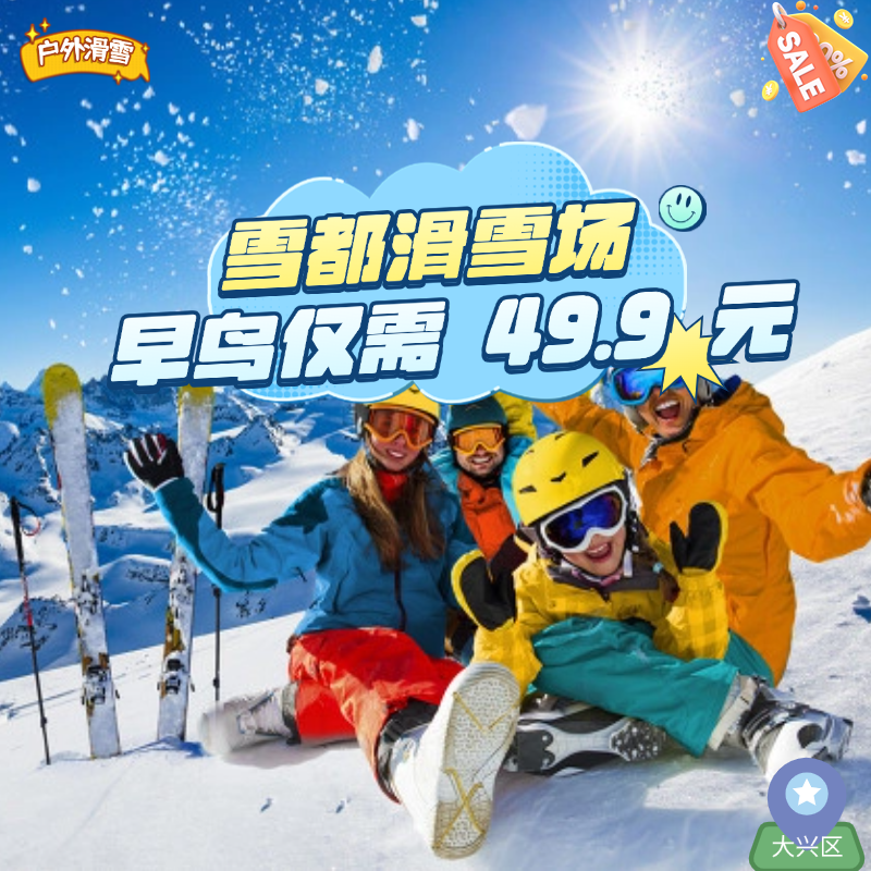 【北京雪都滑雪场门票·特惠】双人春节4小时票308元!含:入园门票+滑雪鞋+滑雪板+滑雪仗+魔毯! 使用有效期:2026年1月26日-2026年2月28日