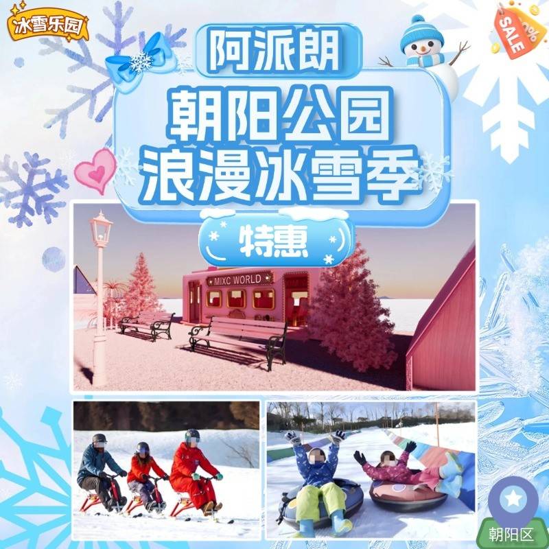 【阿派朗朝阳公园浪漫冰雪季】平日双人票59.8元!门票包含项目:门票、朝阳公园冰雪画框、粉雪小镇/冰玫瑰园、自由戏雪区、雪圈滑道、冰车、雪地黄包车、雪地转转(不限次)!有效使用期:2026年1月10日-2026年2月23日(不包含周六日和春节)