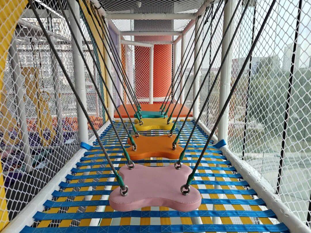 在蹦床和粘粘乐上尽情释放活力。