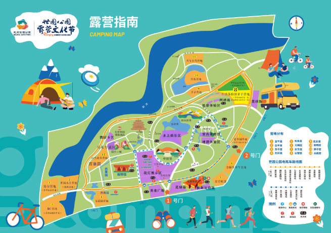 北京世园公园内,多业态露营主题营地较多,以十二星座营地为亮点,融合多业态,