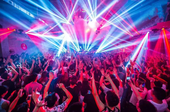 原本寂寥的黑夜被劲爆的音乐“喷绘”,灯光好似孔雀开屏~很适合带着恋人来哦~