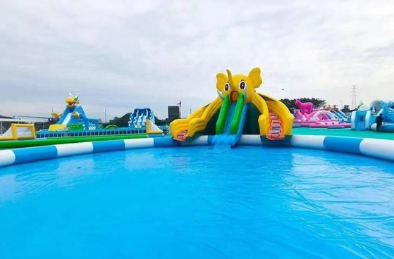 ,亦夏水上乐园占地10000平,所有项目水深不超过1米,龙头大滑梯、