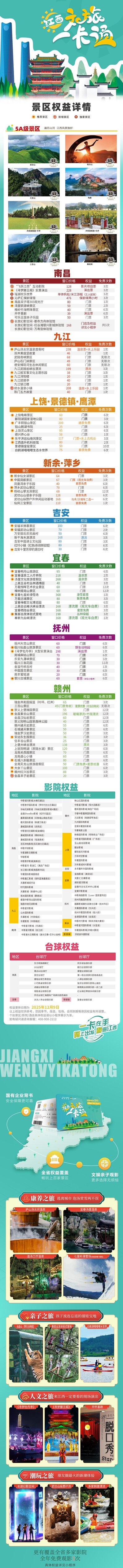 江西文旅一卡通”涵盖全省百家4A级景区(5A级景区7家)、合作影院(全年每人3次电影通票任选)、合作台球权益(全年畅玩3次,每次1小时)及其他二消等优惠权益,总价值超3万元。其中包含以武功山、明月山为代表自然景观,以汤太宗为代表的温泉项目,以武陵岩漂流、白云峰漂流为代表的盛夏戏水项目,以孽龙洞、腾龙洞为代表的溶洞避暑项目,以《寻梦滕王阁》、《寻梦牡丹亭》实景演出为代表的演艺类项目、以抚州仙盖山为代表的游乐场所通票项目等,涵盖全省各地市四季出游目的地。