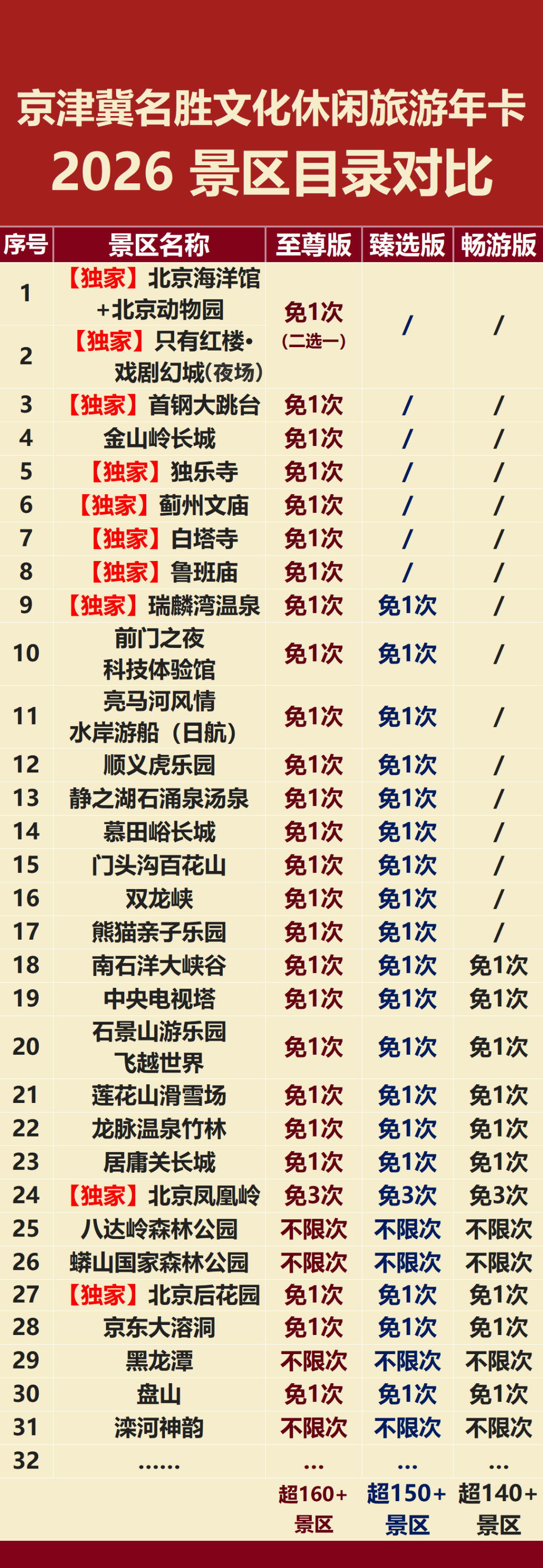 【电子卡】2026京津冀名胜文化休闲旅游年卡!